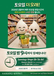 🛒✨ Ihr Asiamarkt HANARO MARKT!📅 Ab dem ersten Samstag im Februar 2026⏰ nur samstags – 1 Stunde länger geöffnet bis 21:00 Uhr!👉 Entspannt einkaufen am
